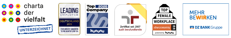 Arbeiten Sie bei einer Bank, in der Sie Ihre weitere Zukunft und die Zukunft der Genossen­schaftsbanken erfolgreich gestalten können. Die DZ BANK ist die zweitgrößte Geschäftsbank Deutschlands, Spitzeninstitut der Genossen­schaftlichen FinanzGruppe Volksbanken Raiffeisenbanken, Zentralbank für mehr als 700 deutsche Genossen­schafts­banken und hat die Holdingfunktion für die Unternehmen der DZ BANK Gruppe. Wir sind ein verlässlicher und leistungs­fähiger Arbeitgeber, der Ihnen neue spannende Heraus­forderungen bietet. Der lösungs­orientiertes Denken mit konsequentem Handeln verbindet. Der Ihre Erfahrung wertschätzt und sich Nachhaltigkeit und Weitsicht verpflichtet. Und der besonders partner­schaftlich denkt und arbeitet – denn wir gestalten Erfolg gemeinsam, gerne mit Ihnen.